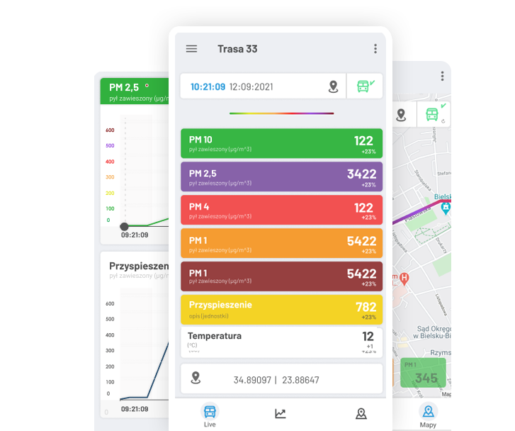 Nasza usługa pozwala na synchronizację danych rzeczywistych i historycznych z dedykowaną aplikacją mobilną, która umożliwia śledzenie pomiarów powietrza na żywo z różnych czujników.